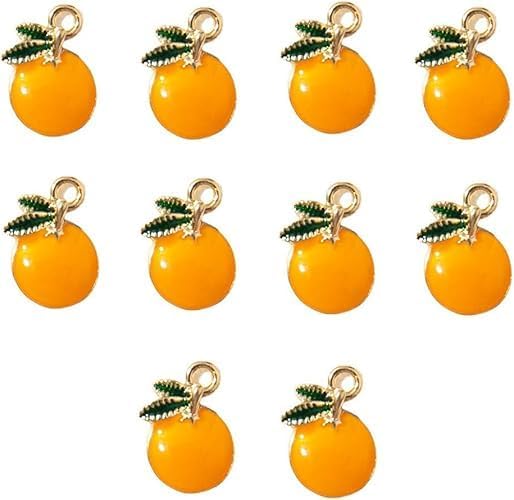 10 Pcs Cartoon Orange Fruit Charms for Jewelry Making, DIY Plated Enamel Cute Orange Pendant for Earring Necklace Bracelet Keychain Craft Supplies Findings Making Accessories, 8x13mm