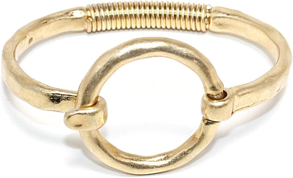 POMINA Chunky Fashion Bangle Bracelet for Women, Hammered Worn Gold & Silver Tone, Unique Style Spring Tension Hook Cuff Fashion Jewelry Gift
