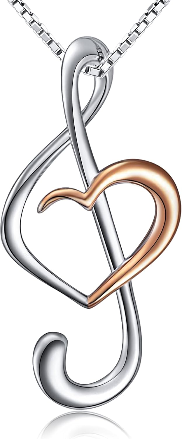 DAOCHONG (Musical Note Necklace Pendant 925 Sterling Silver Jewelry for Women, 18 Inch