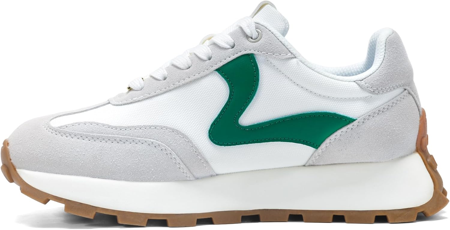 LUCKY STEP Women's Platform Retro Sneakers Classic Tennis Fashion Casual Anti-Slip Lace-up Walking Shoes Running Trendy Color Block Green Footwear