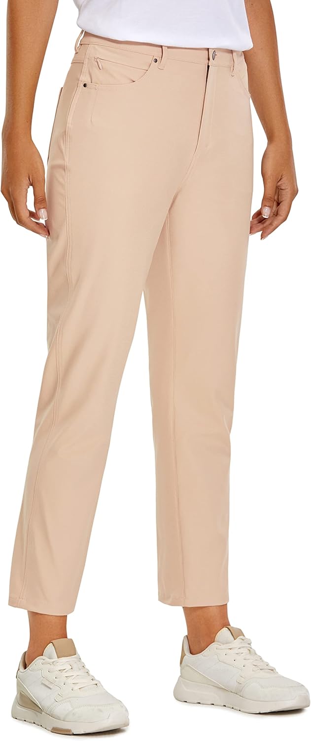 CRZ YOGA Women's High Rise Golf Pants 27" Quick Dry Stretch Casual Straight Leg Dress Work Pants with 5 Pockets