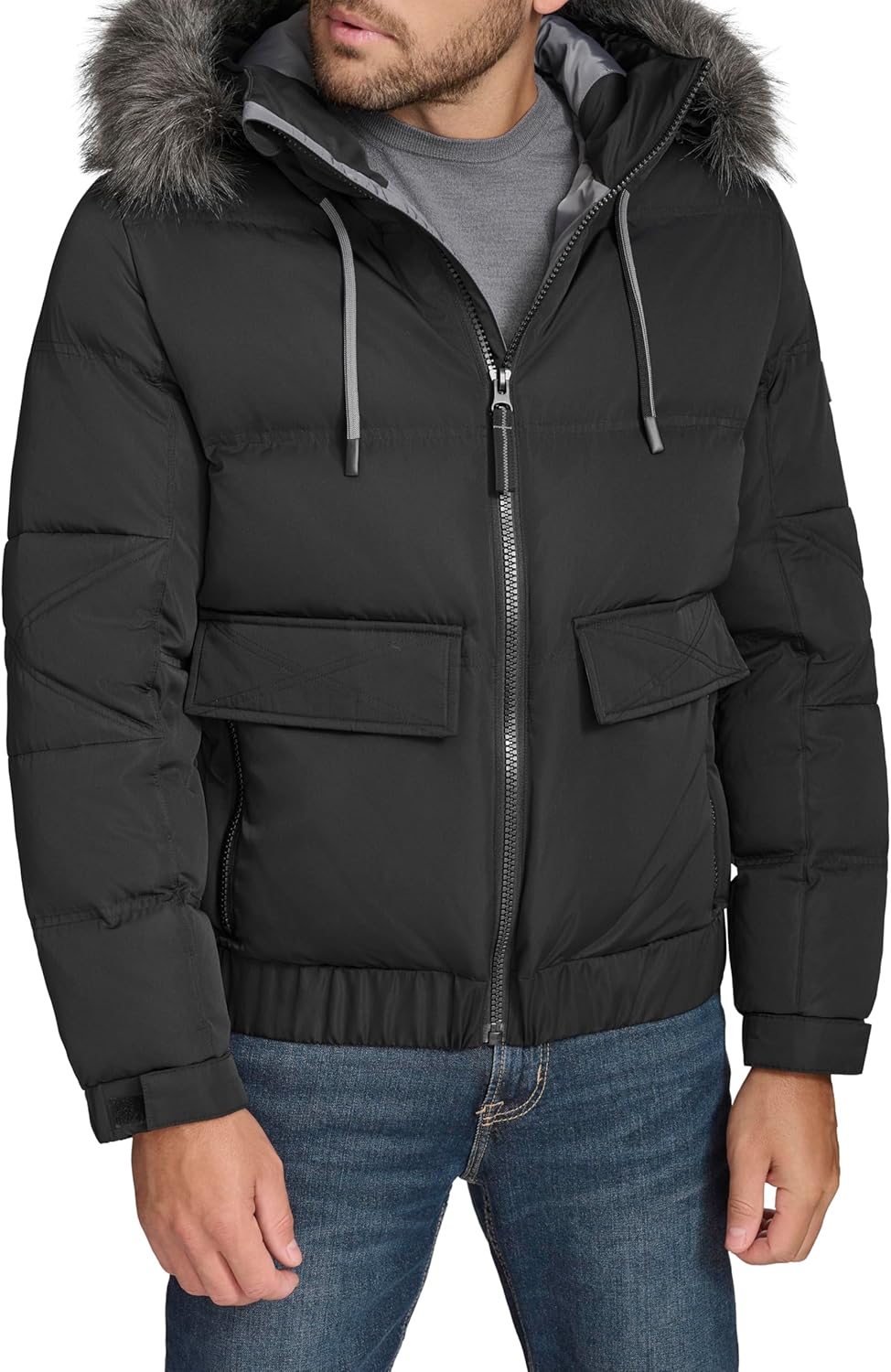 Andrew Marc Men's Outerwear Lithgow Bomber With Removable Faux Fur Hood