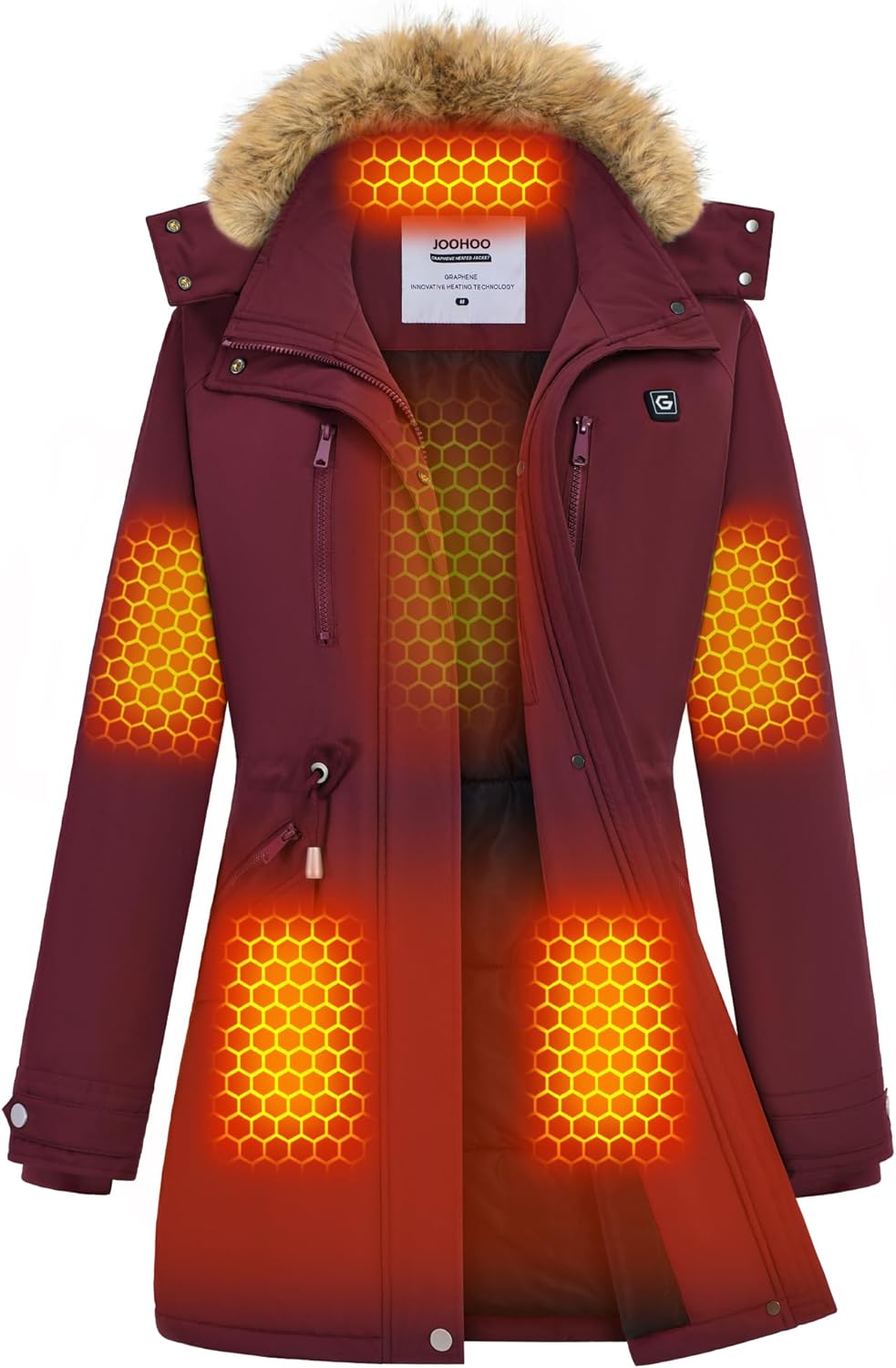 Graphene Heated Jacket Parka for Women with Rechargeable Battery Pack Included