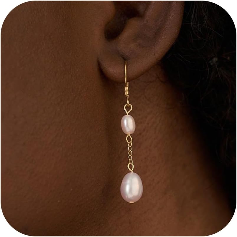 Gold Pearl Earrings for Women, 14K Gold Plated Freshwater Pearl Dangle Earrings Dainty Bridal Earring Wedding Jewelry Bridesmaid Gifts for Women Girls