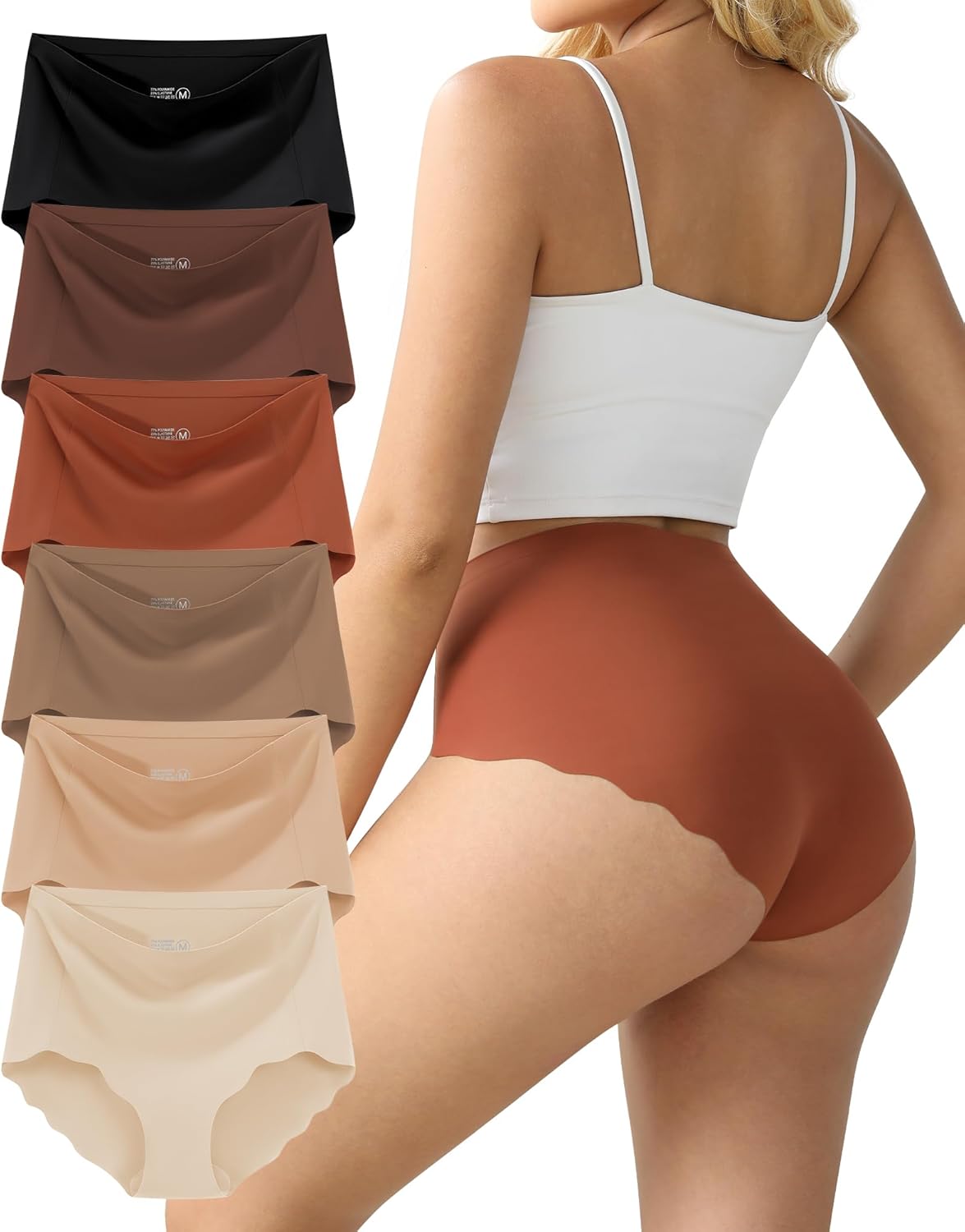 Seamless Underwear for Women, Mid High Waisted Tummy Control Ladies Briefs Full Coverage No Show Bikini Panties 6 pack