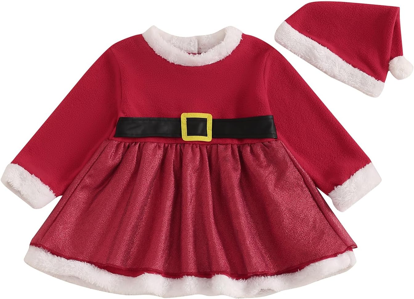 Baby Girls Cute Long Sleeve Plush Collar Dresses with Santa Hat Newborn Infant Christmas Outfit