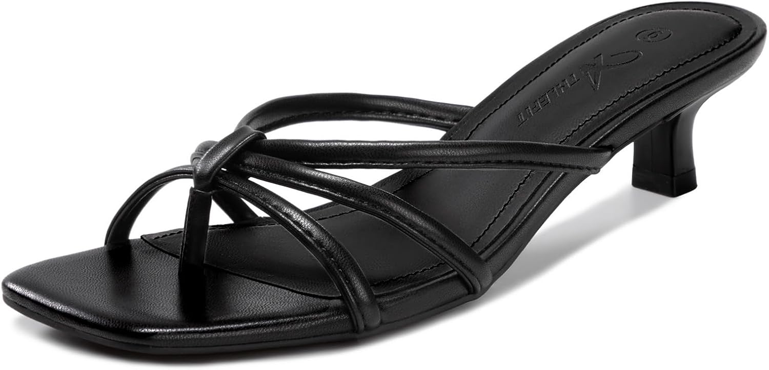 Athlefit Women's Strappy Kitten Heels Square Toe Flip Flop Low Heels Slip On Thong Heeled Sandals