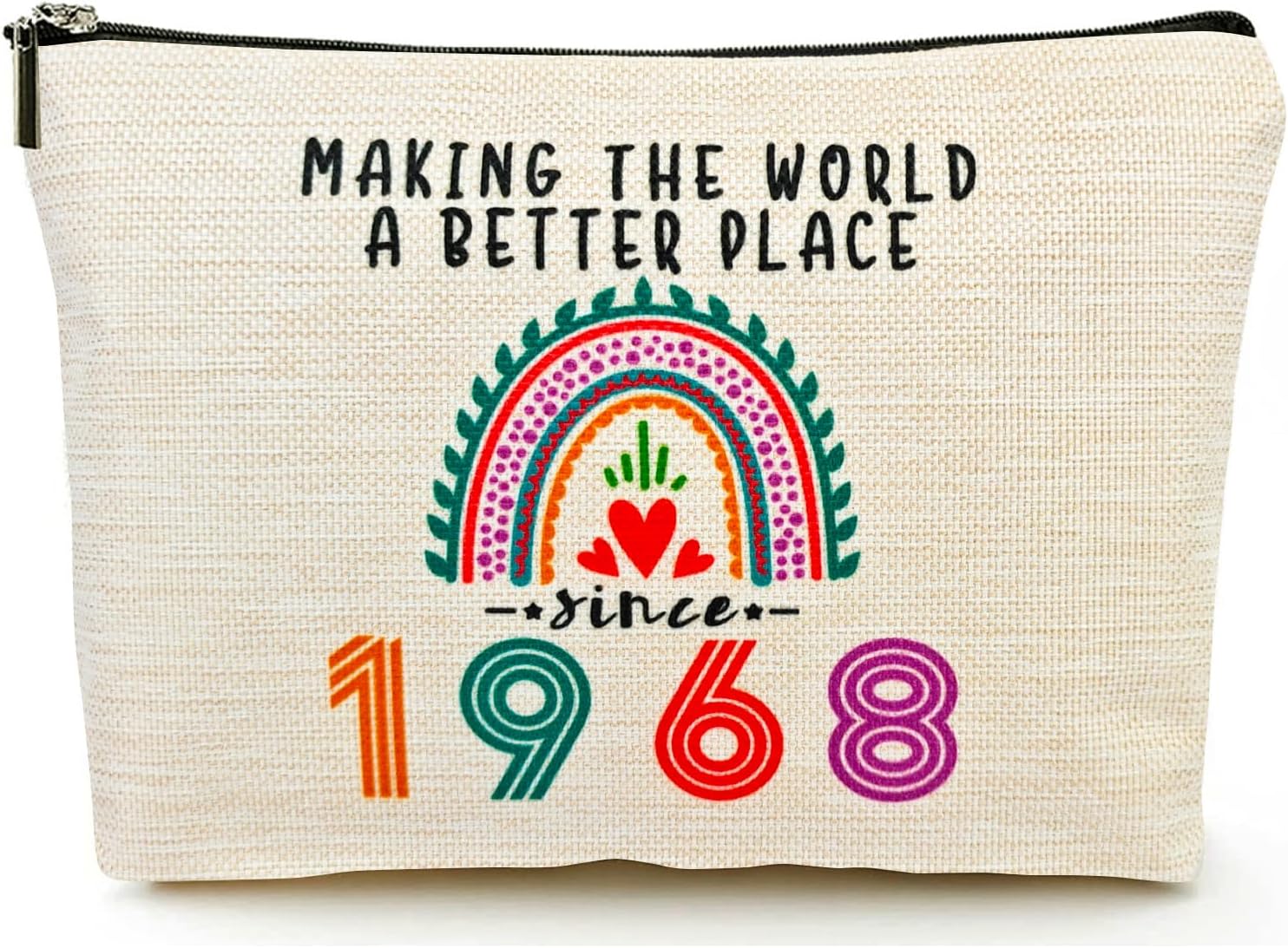 - 【58th Birthday Gifts for Women】Step into the quarter of a century mark with this special makeup bag, an ideal choice for 58th birthday gifts for her. Branded with the phrase 'MAKING THE WORLD A BETTER PLACE SINCE 1968', this makeup bag celebrates the wonderful journey of life, marking it a significant and memorable 1968 birthday gifts for her, 1968 birthday gifts for women.