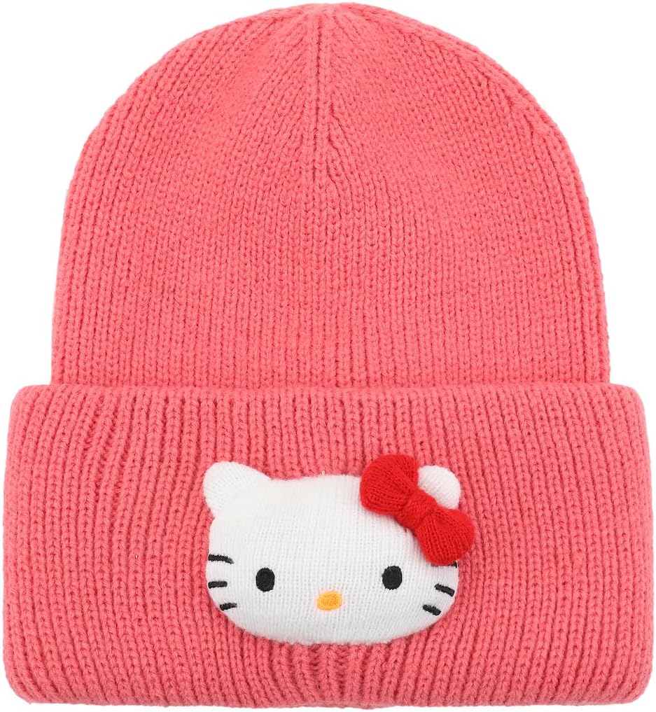 Hello Kitty 3D Plush Character Head Red Tall Cuff Beanie