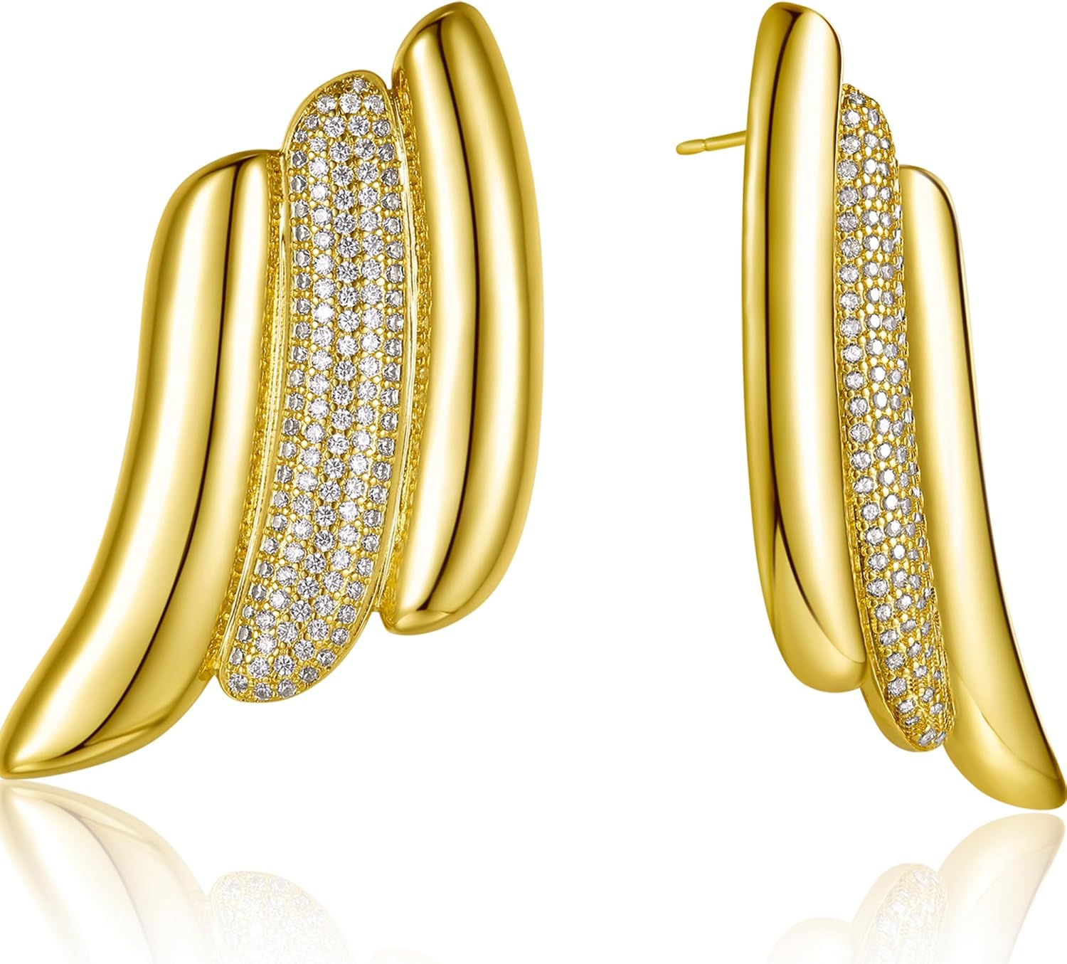 Swirl Bold Stud Earrings | 18K Gold Plated Triple Wave On The Ear Stud Earring | Large Wing Statement Earrings