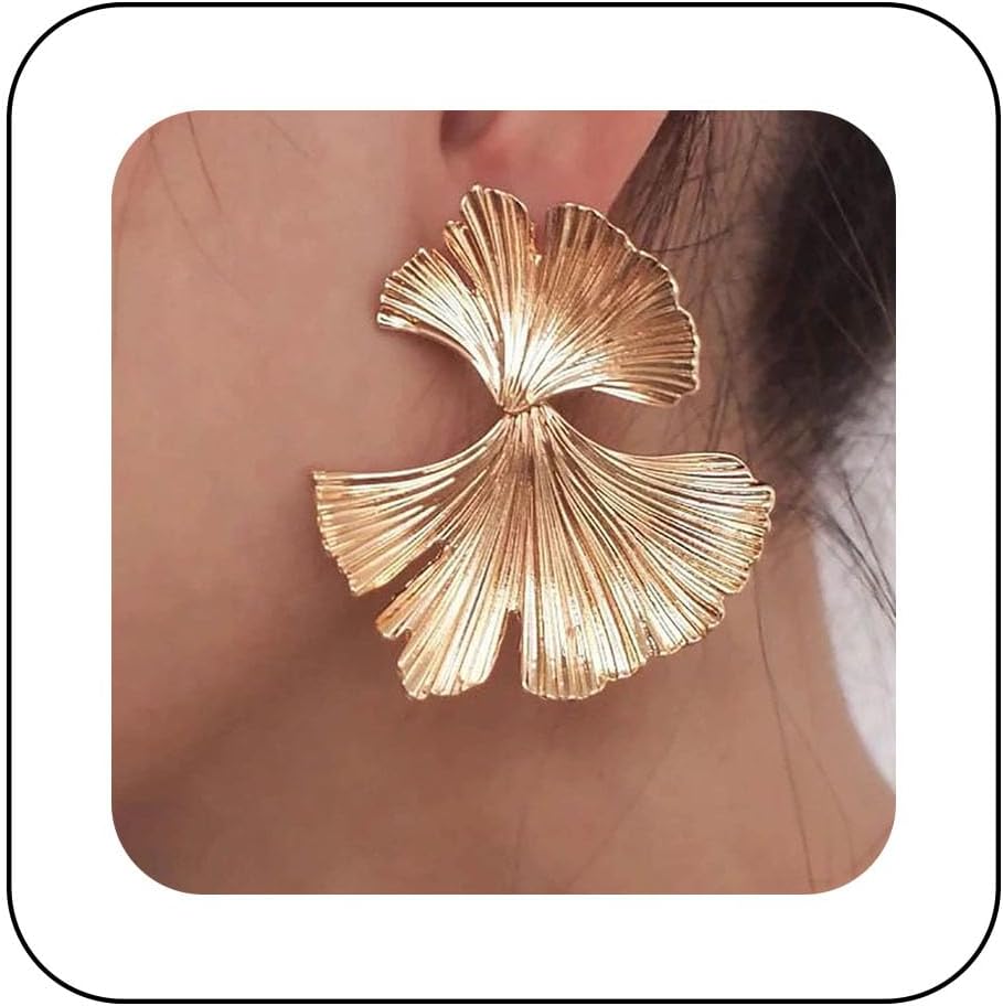 Andelaisi Boho Large Leaf Earrings Vintage Ginkgo Leaf Earrings Exaggerated Large Leaf Studs Earrings Gold Leaf Statement Earrings Jewelry for Women