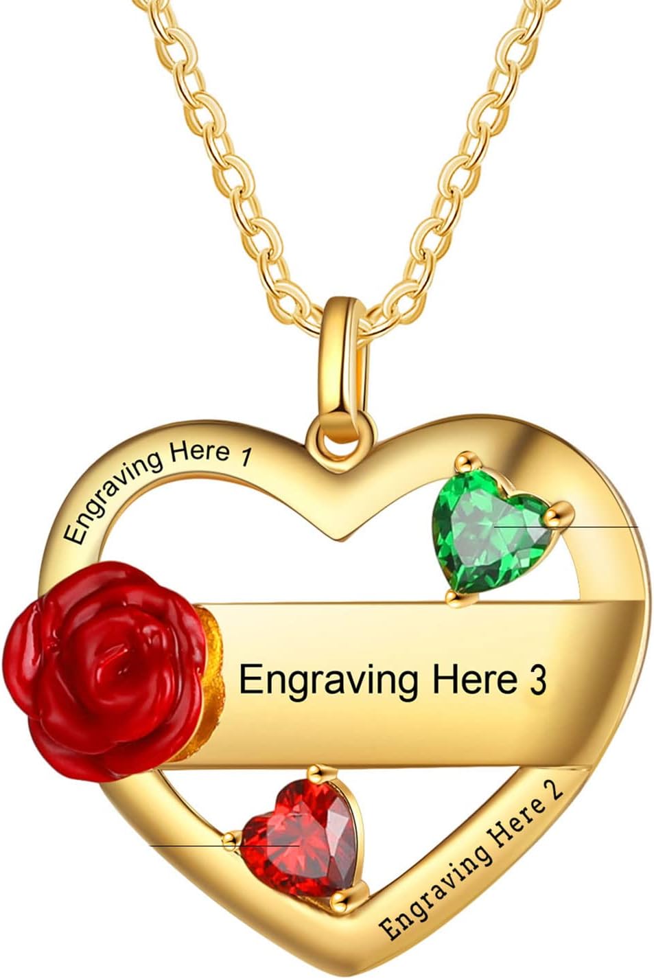 10K, 14K, 18K Solid Gold Personalized Heart Pendant Necklace for Mom Customized Gold Mothers Necklace with 2 Birthstones and Names Jewelry Gifts for Mom Wife Grandmother