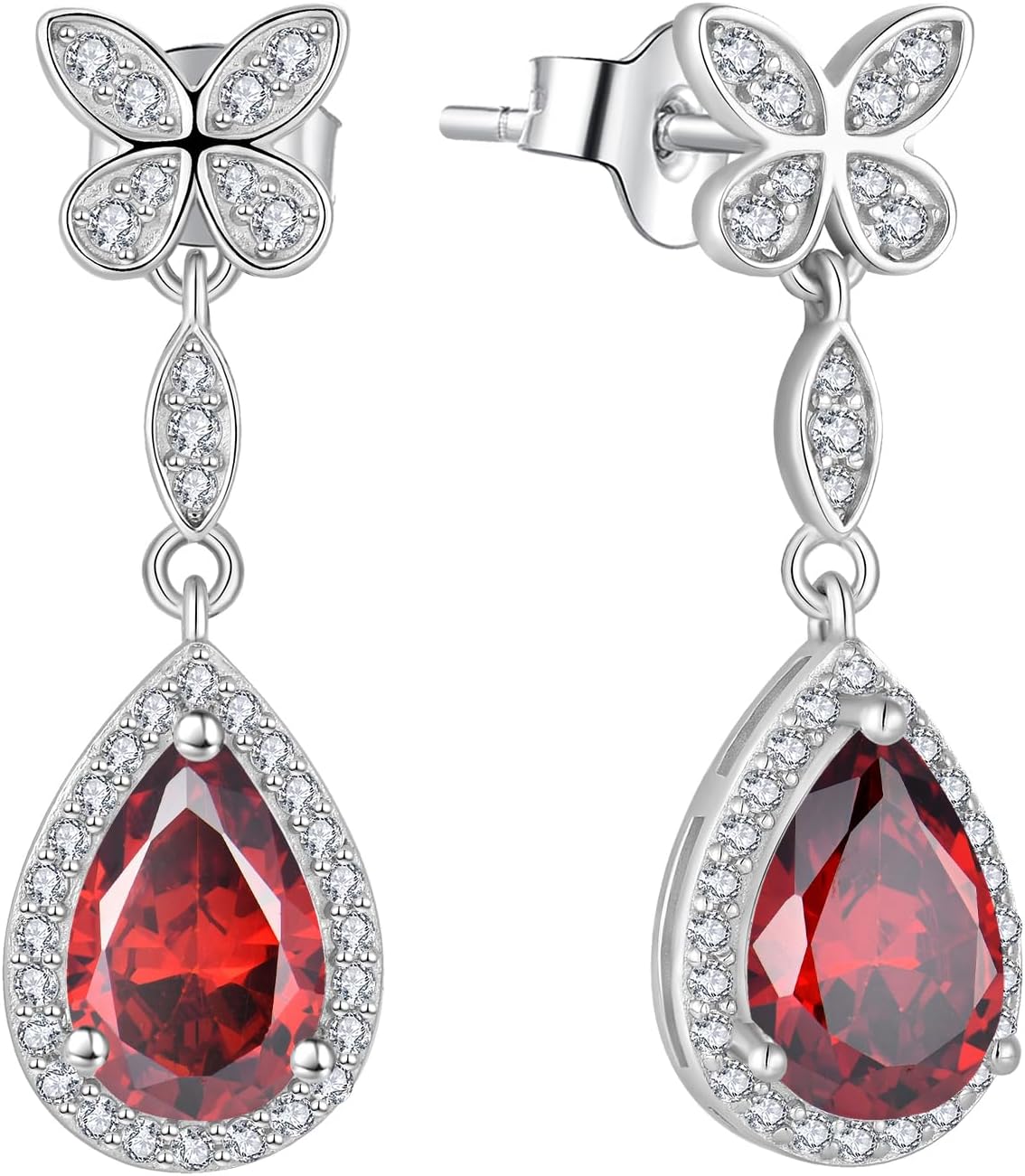 Fahonie Sterling Silver Butterfly Drop Earrings with Cubic Zirconia Dangle Earrings Birthstone Jewelry Gifts for Women
