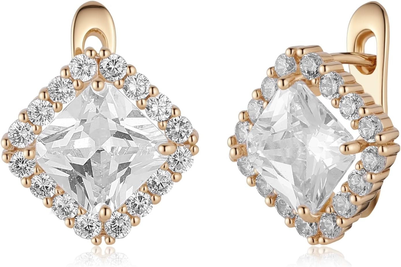 HZMAN Large Crystal Earrings for Women Rose Gold Plated Brass Snowflake/Heart/Teardrop/Square/Oval Diamond Cut Earrings