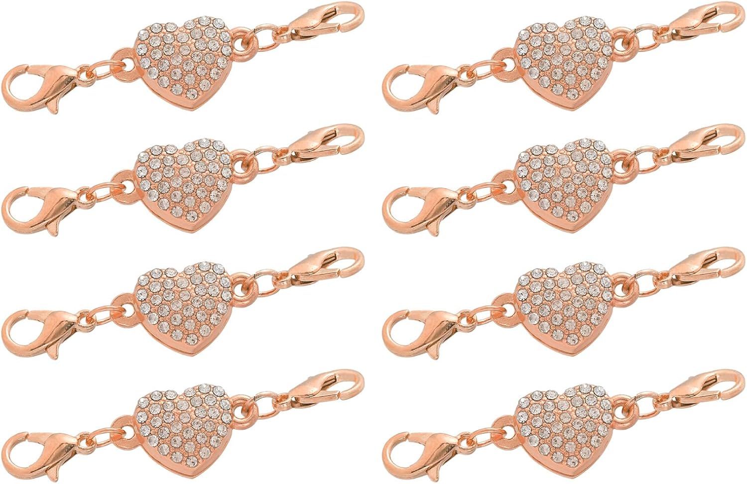 uxcell 8Pcs Jewelry Clasps, Heart Rhinestone Clasps Locking Closures with Lobster Clasps for Bracelet Necklace (Rose Gold)