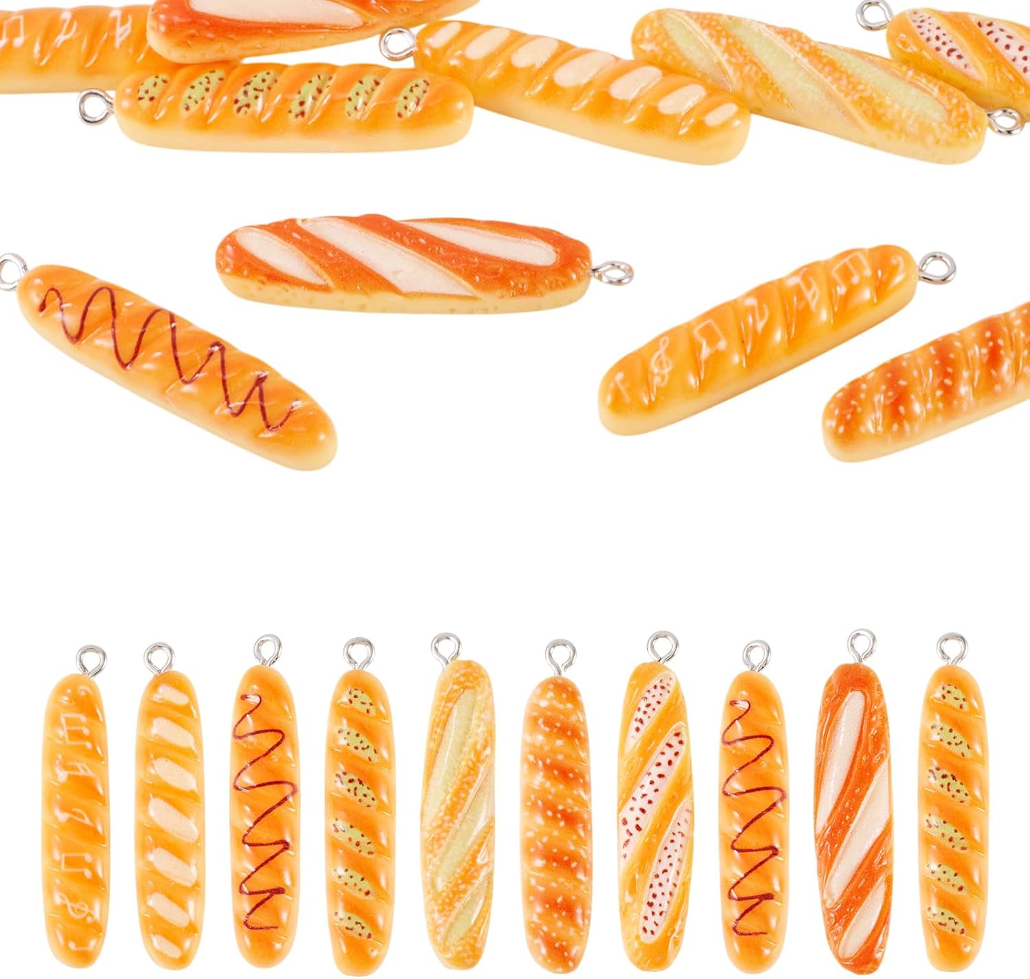 Resin Bread Charms Baking Handmade Croissant French Bread Baguette Toast Pendants Cute Imitation Food Charms for DIY Crafts Keychain Necklace Hang Ornament Jewelry Making