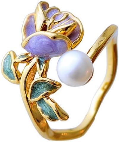 Kokoma Rose Flower Open Ring for Women Simulated Pearl Enamel Floral Ring Adjustable Wrap Rings Promise Engagement Wedding Fashion Jewelry