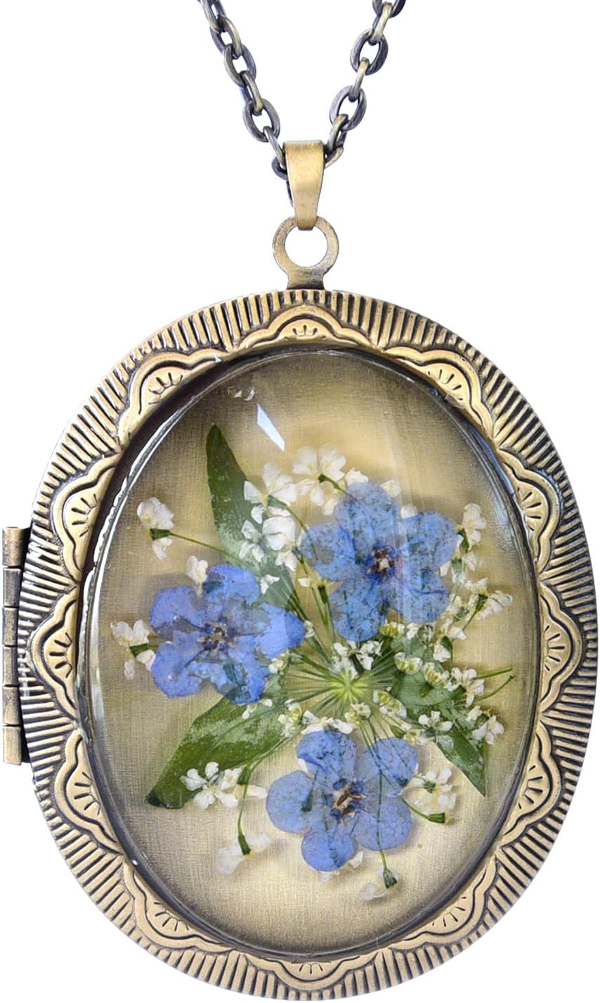 Vintage Photo Locket Necklace Handmade Pressed Flower Locket Necklace for Women