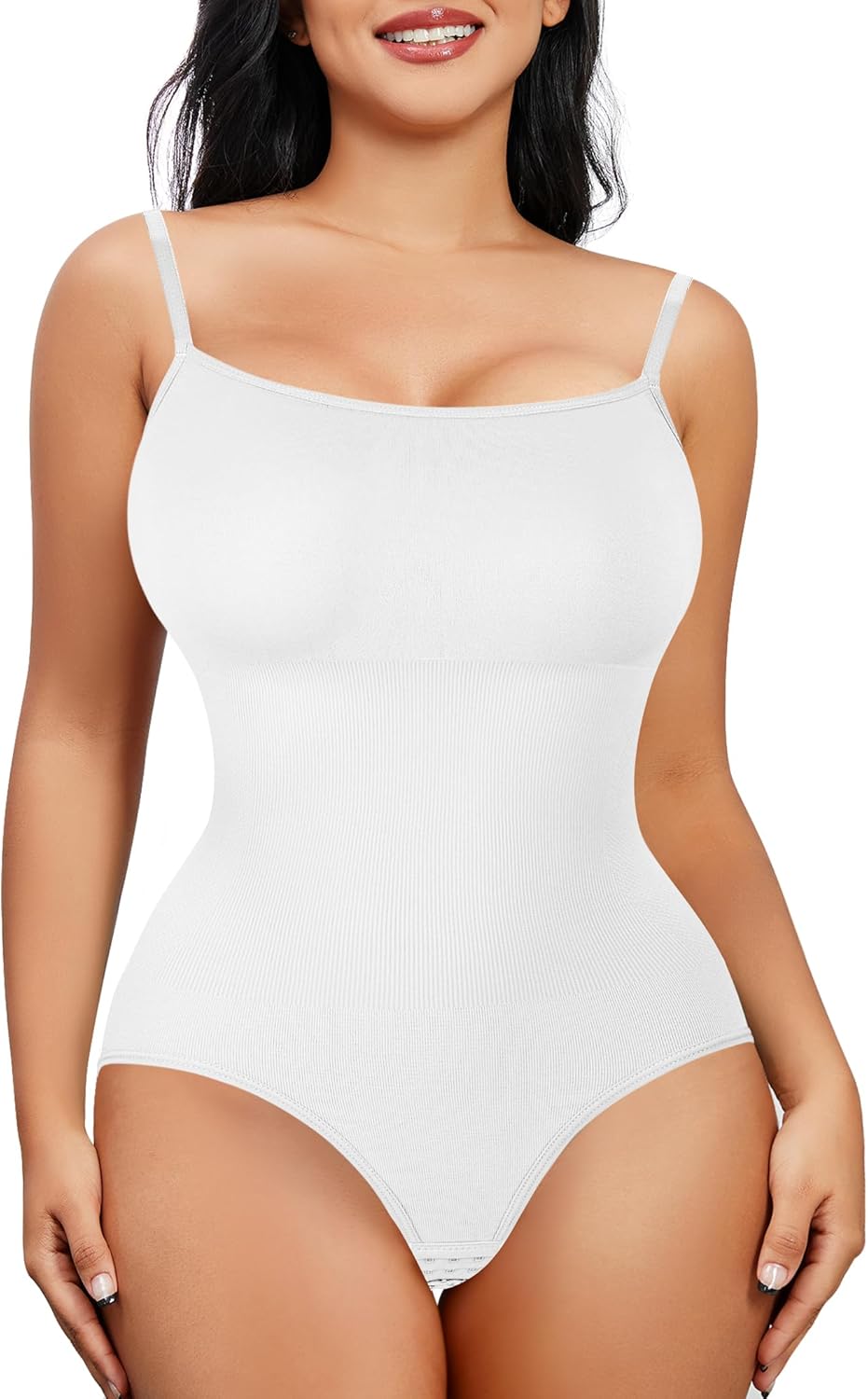 Nebility Shapewear Bodysuits for Women - Tummy Control Square Neck Bodysuit Seamless Full Body Shaper Going Out Top