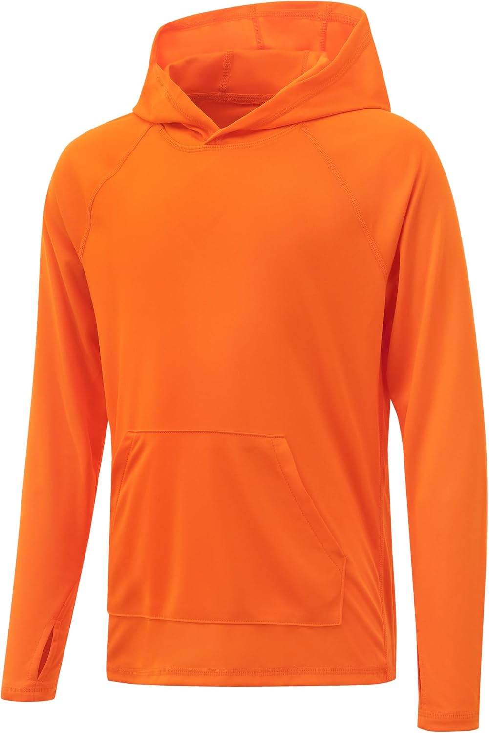 Boys Rash Guard Long Sleeve Hoodie Swim Shirt with Pocket Youth Kids UPF 50+ Sun Protection Fishing Shirts Thumb Hole