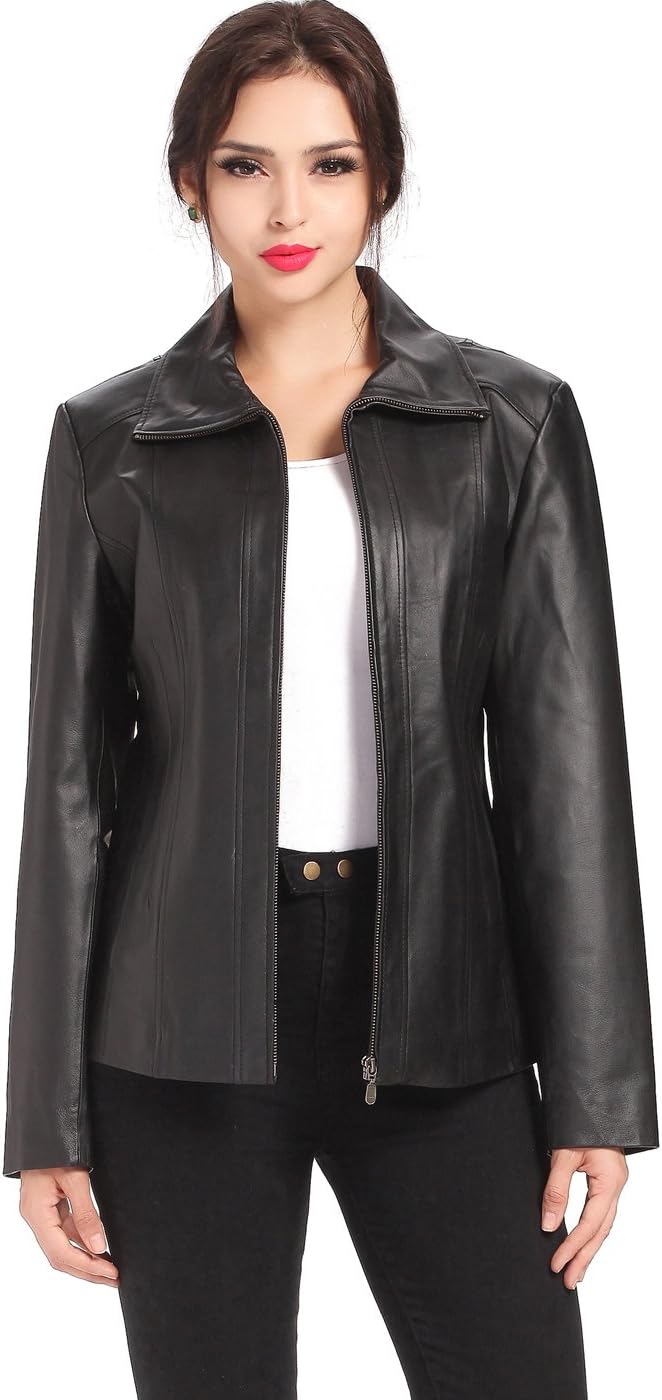 BGSD Women Tina Lambskin Leather Scuba Jacket (Also available in Plus Size & Petite)