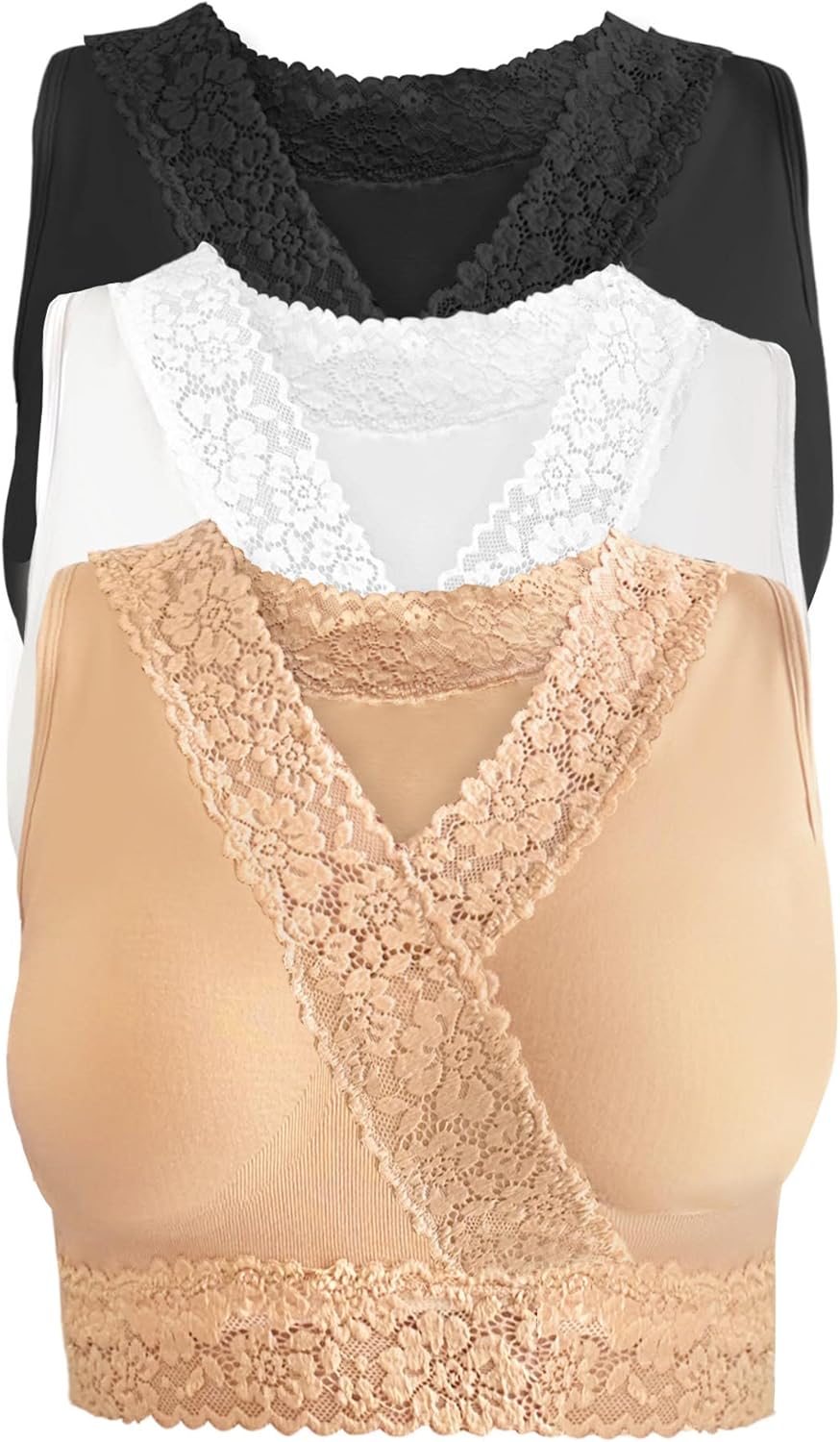 3-Pack Women's Seamless Wireless Unpadded Lace Trim Comfort Bra