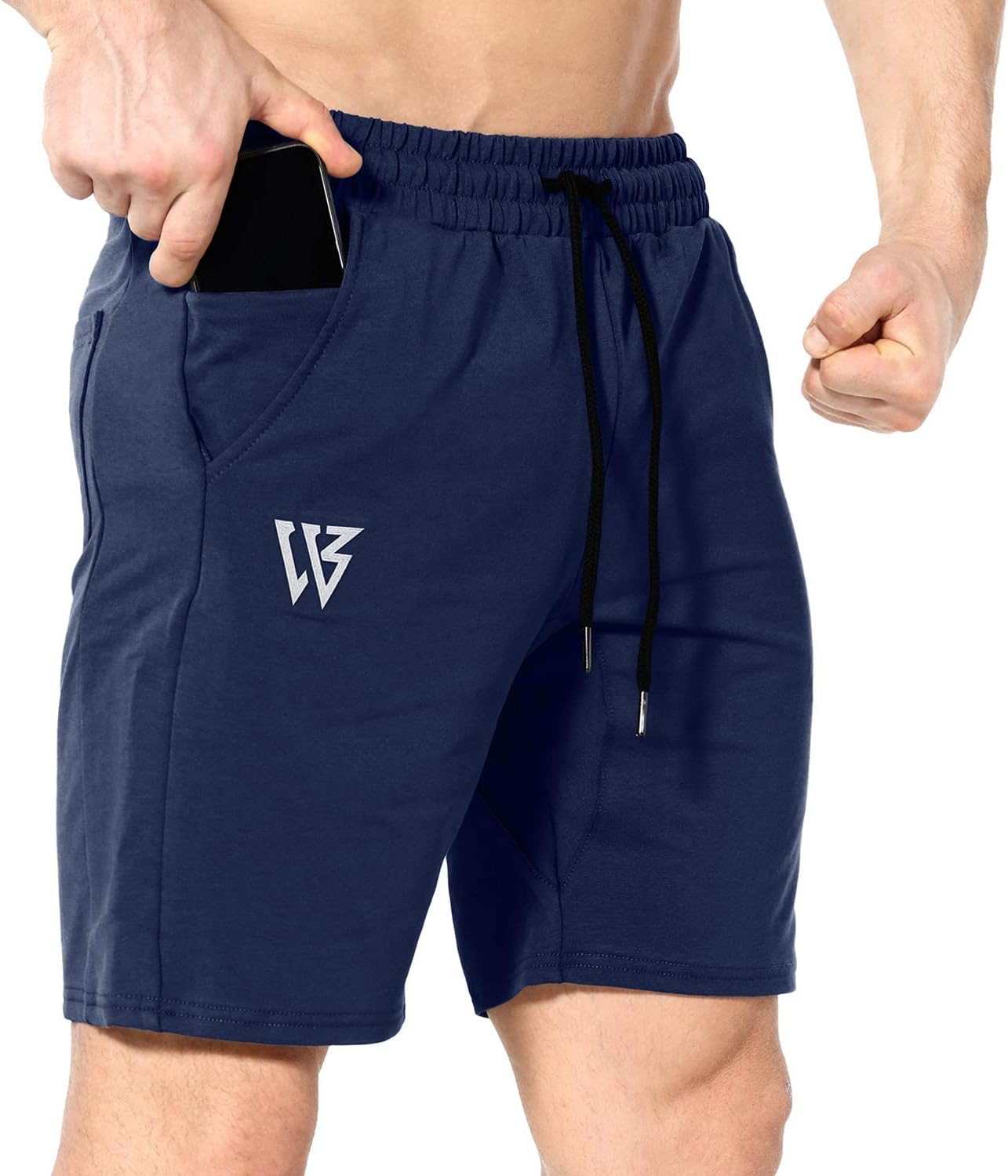 ZENWILL Mens Gym Running Shorts, Workout Athletic Bodybuilding Fitness Shorts with Zip Pockets