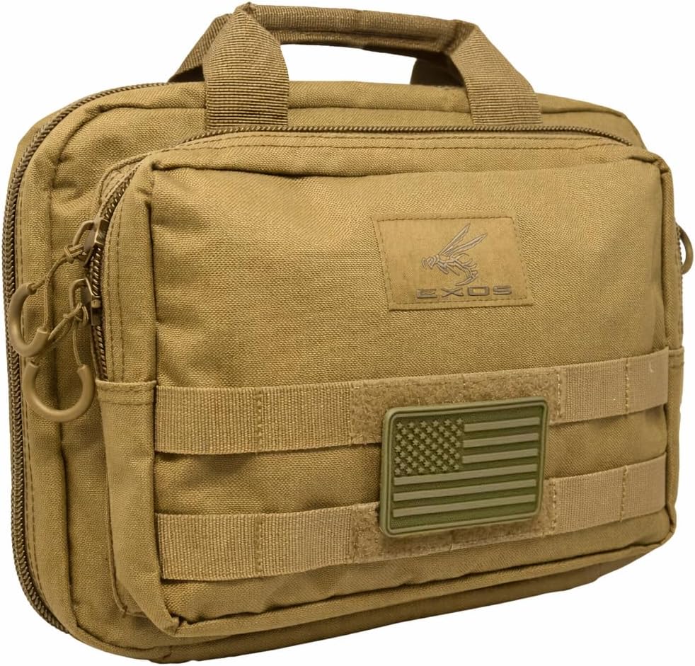 Exos Double Pistol Case - Tactical Double Soft Pistol Gun Bag - Handgun Carrying Case with Compartments - Hand Gun Storage Bag with MOLLE Webbing and Padded Interior