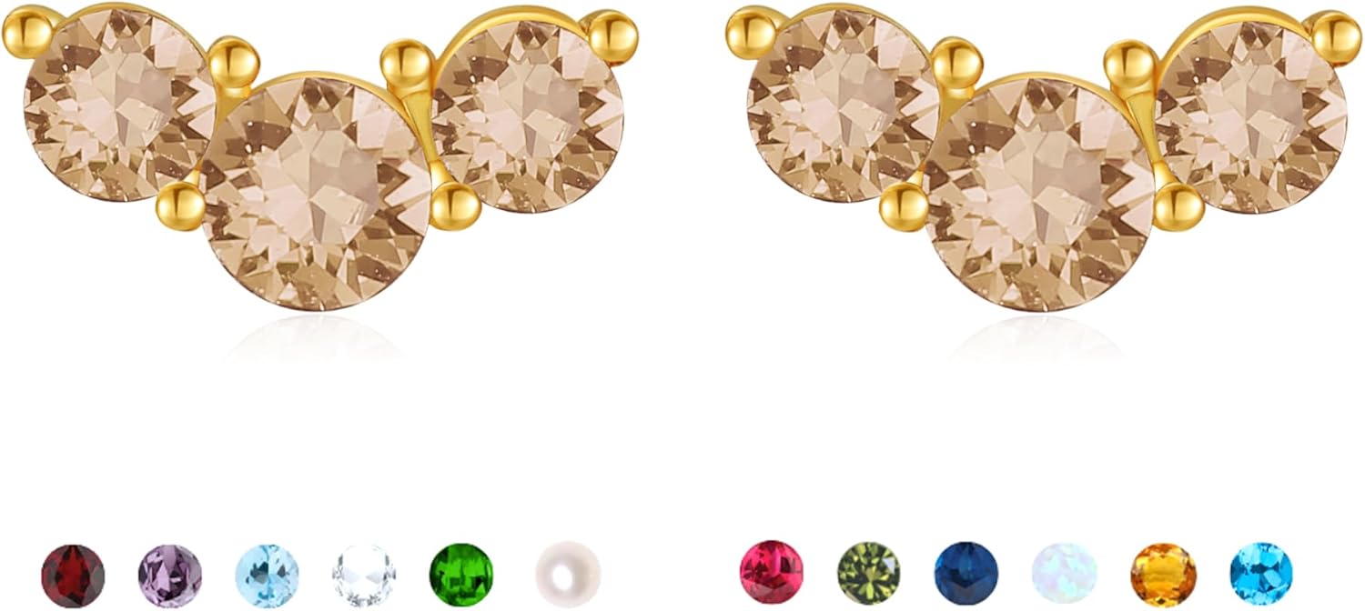 Stud Earrings for Women Birthstone Studs 14K Gold Plated S925 Sterling Silver Hypoallergenic Earrings Cubic Zirconia Stud Earrings Cartilage Earring for Women Trendy
