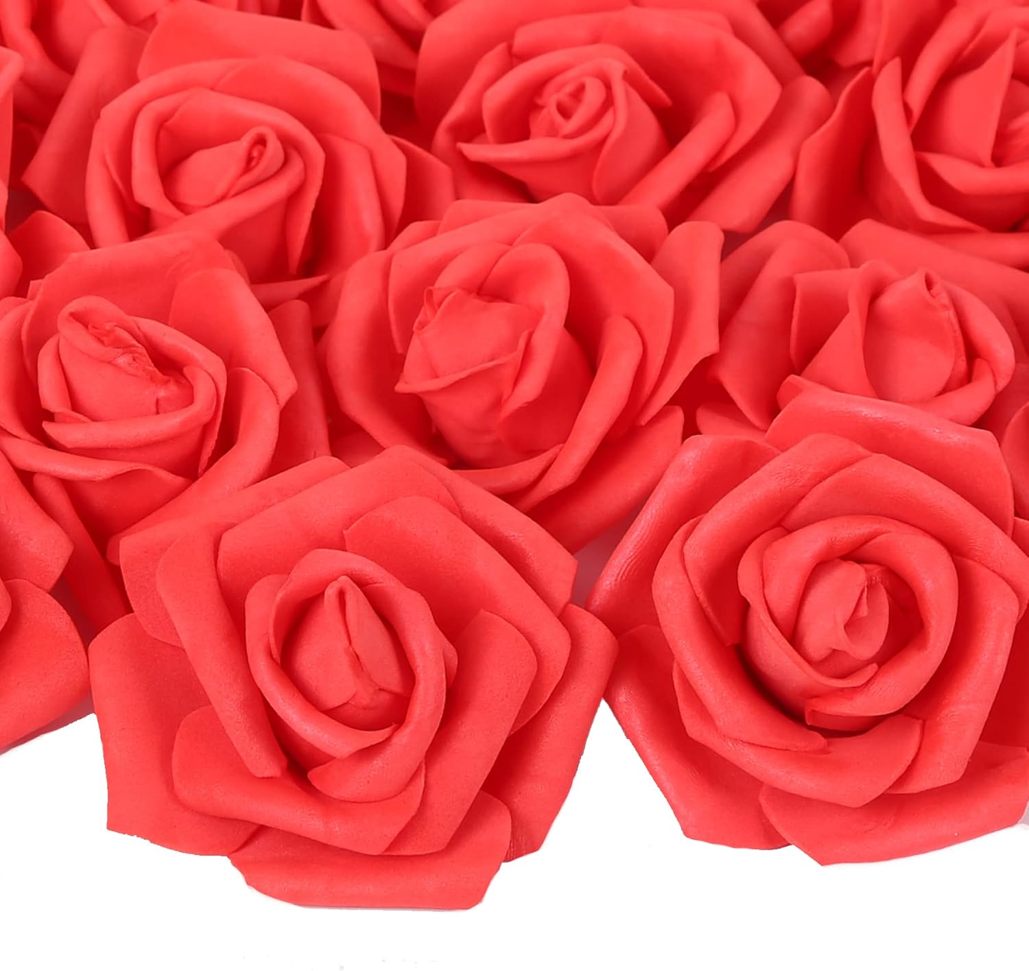 Artificial Rose Flowers,100 pcs Red Foam Rose Bulk Fake Flower Heads for DIY Wedding Bouquets Rose Wall Kissing Balls Bridal Shower Centerpieces Arrangements Party Tables Decorations(Coral Red)