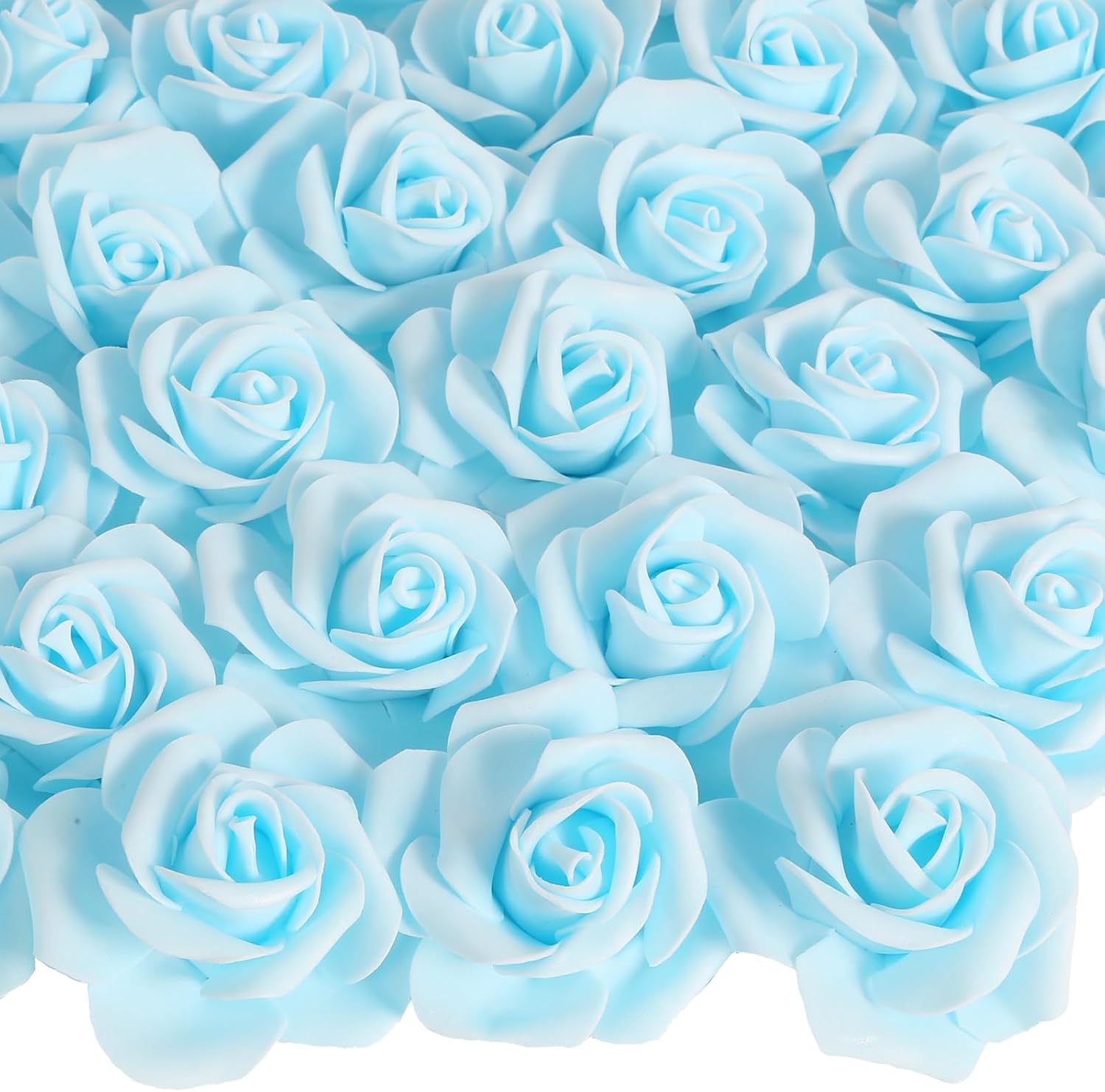 100PCS Baby Blue Foam Roses Artificial Flowers Blue Foam Flowers Bulk Stemless Fake Roses for DIY Wedding Centerpieces Arrangements Party Baby Shower Home Decor(Baby Blue)