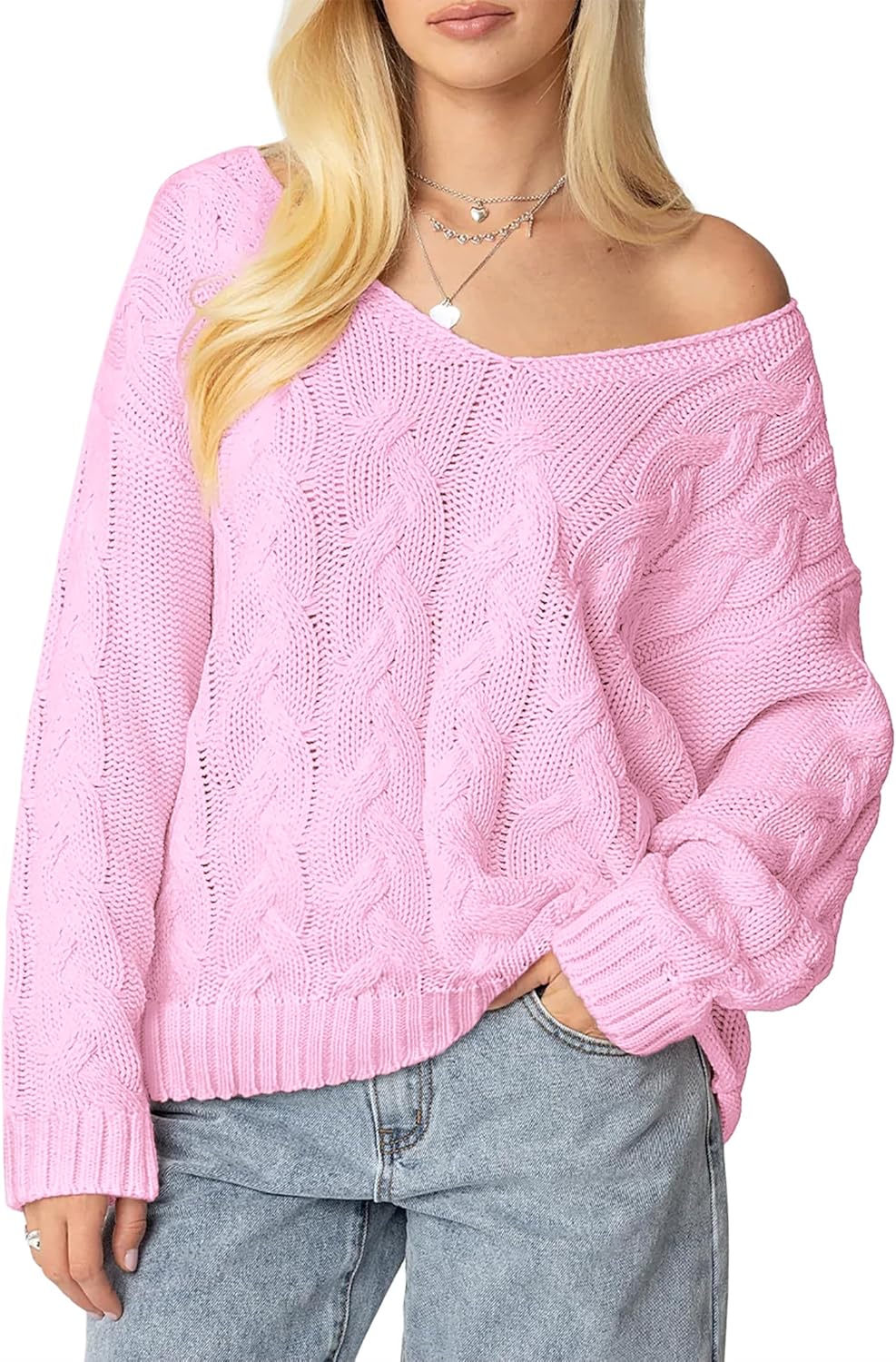 IWD Women's Oversized Sweaters Cable Knit V Neck Long Sleeve Pullover Sweater 2026
