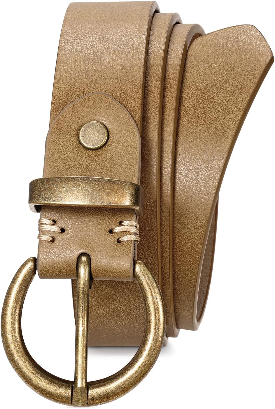JASGOOD Women Leather Belt for Jeans Pants Vintage PU Leather Belt Solid Brass Circle Buckle for Ladies