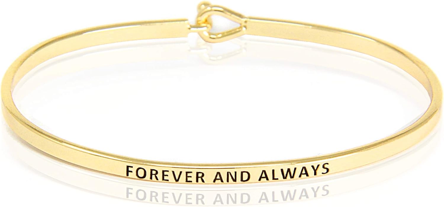 SM Inspirational Positive Message Engraved Thin Cuff Bangle Bracelets for Women (FOREVER AND ALWAYS - Gold)