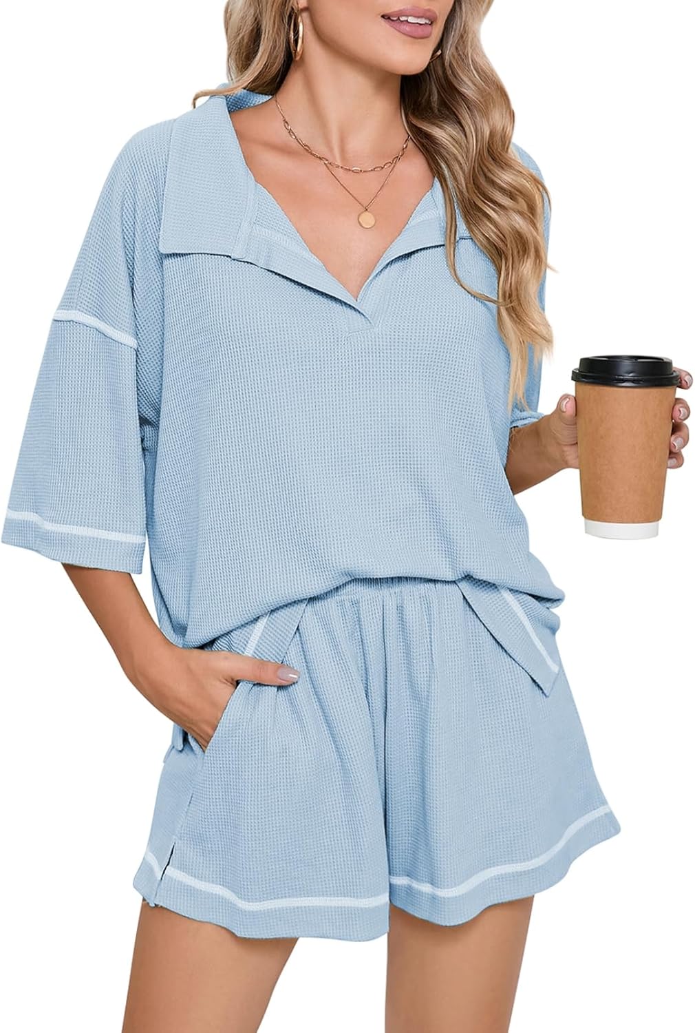 Pink Queen Womens 2 Piece Pajama Sets Short Sleeve Tops Lounge Sets Casual 2 Piece Outfits Summer Short Sets Loungewear
