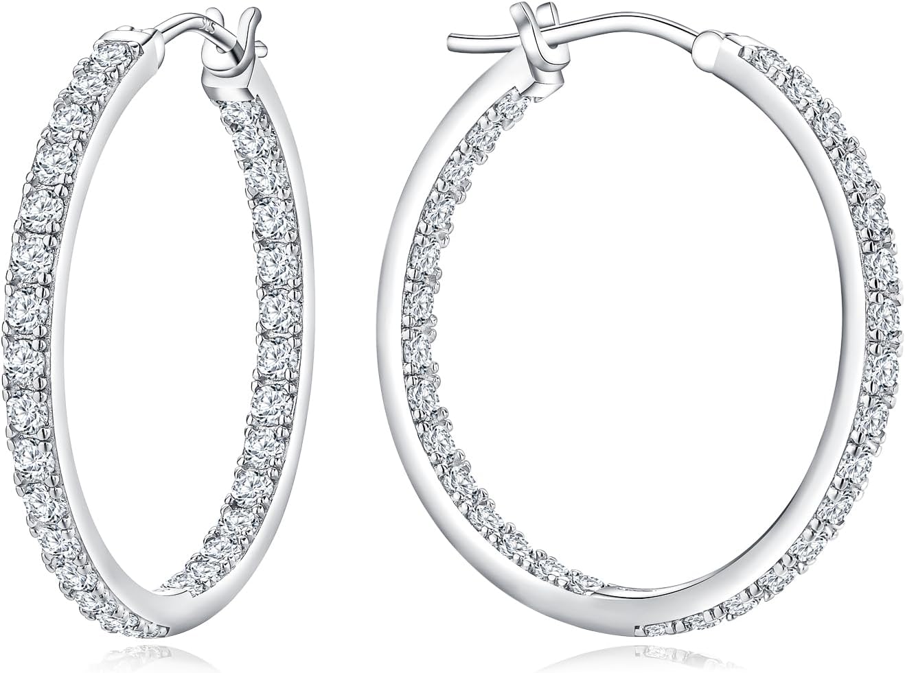 925 Sterling Silver Birthstone with Cubic Zirconia Hoop Earrings for Women fit Sensitive Ears 31mm(1.22 Inches) Large Ear Hoops(with Gift Box)