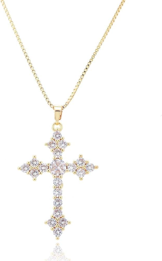 ![RIZILIA 18K Yellow Gold Plated Women's Cross Necklace, Round Cut CZ [Multiple Colors Available] Cross Pendant Necklace for Women, Trendy Jewelry Gift for Women](https://m.media-amazon.com/images/I/415mrp0yn5L._AC_SL1000_.jpg)