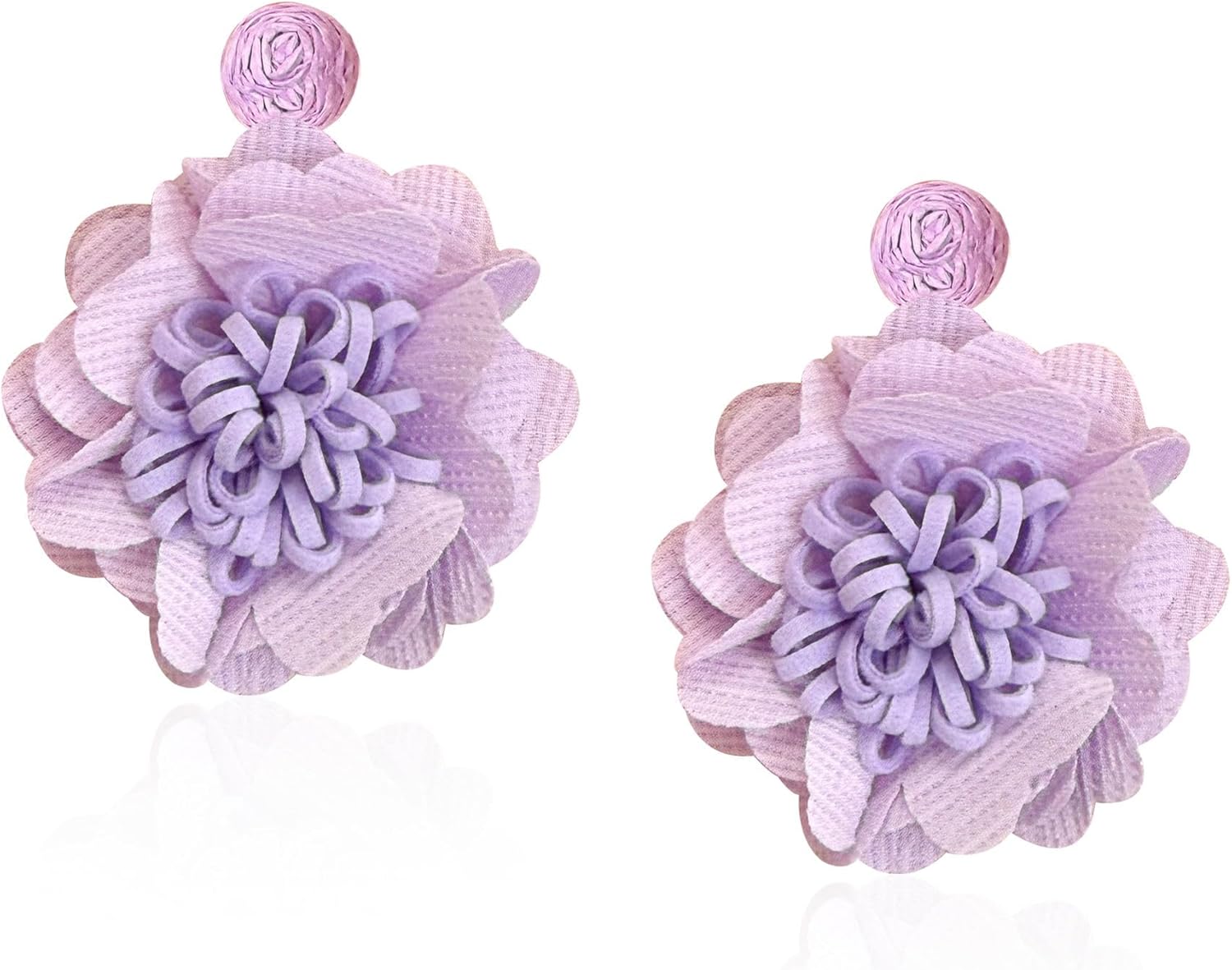 Handmade Fabric Flower Dangle Earrings for Women Bohemian Floral Cloth Earrings for Casual Wear lightweight