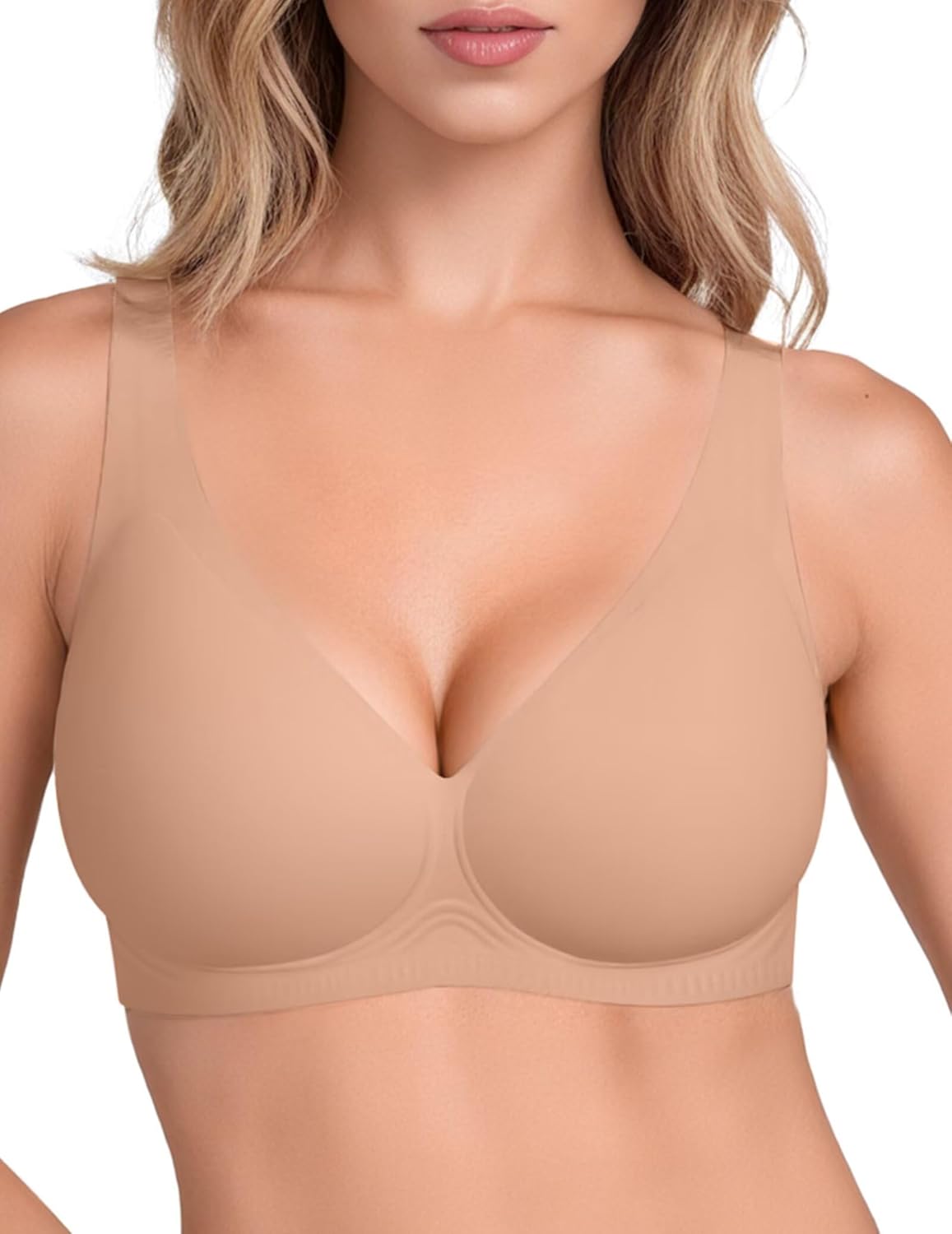 Vertvie 2026 Womens Wireless Jelly Bras Push Up Cup-Engineered Support Deep V Lift Bra Seamless No Underwire T-Shirt Bralette