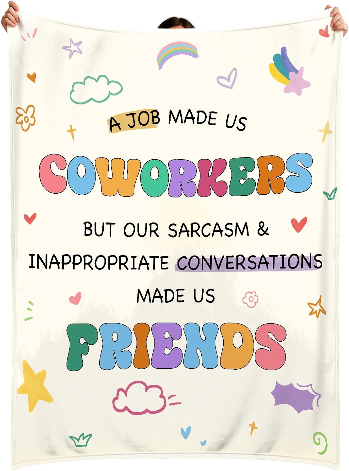 - Thoughtful Gift: designed as a meaningful gift for female colleagues, the Work Bestie Blanket serves as an ideal friendship souvenir; Featuring humorous and endearing messages, it acts as a heartfelt gesture for expressing love and appreciation towards work bestie gifts for women