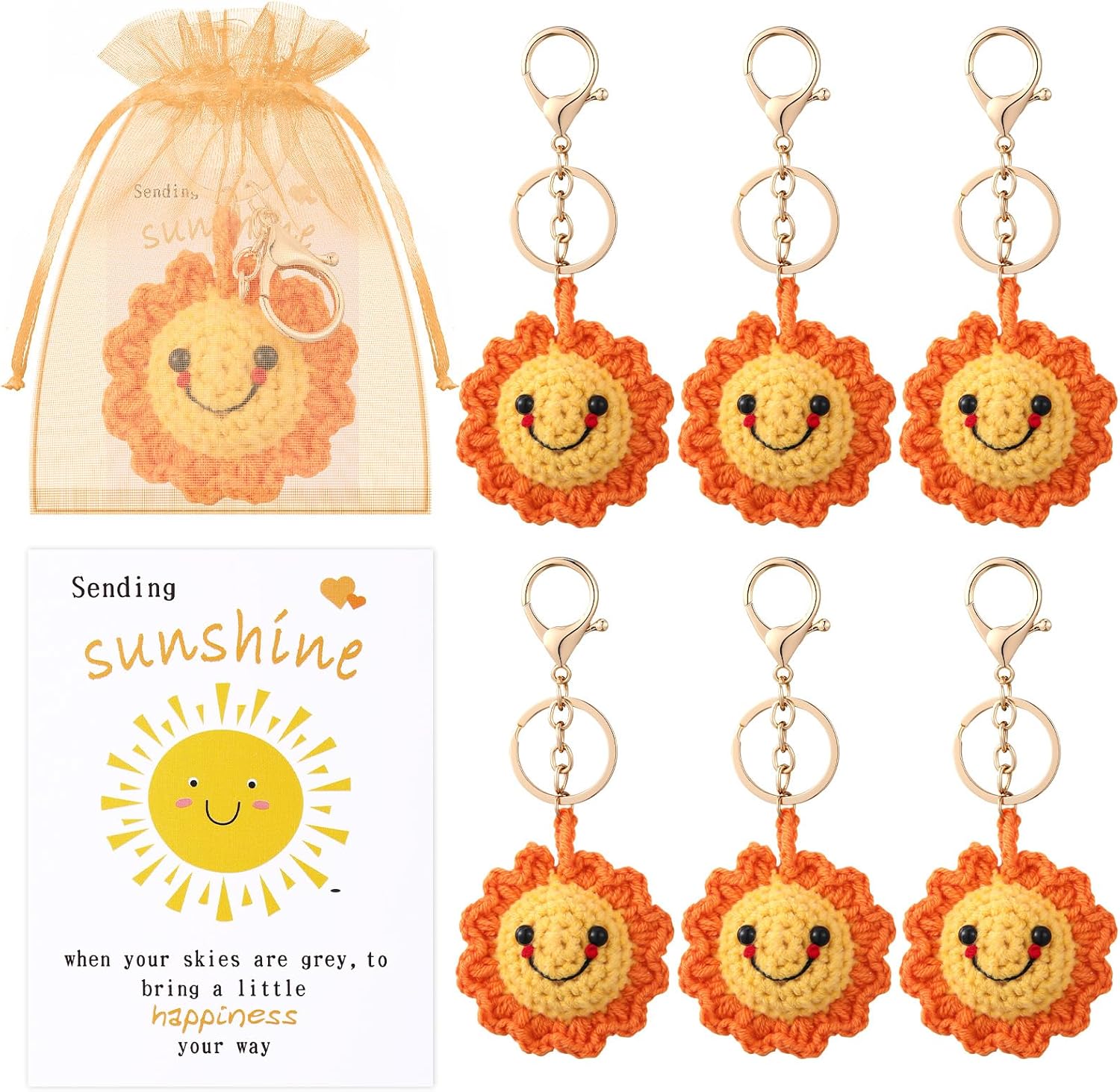 Zeyune Crochet Sunflower Keychains with Sunshine Card Positive Inspirational Friendship Sunshine Keychain Appreciation Gift