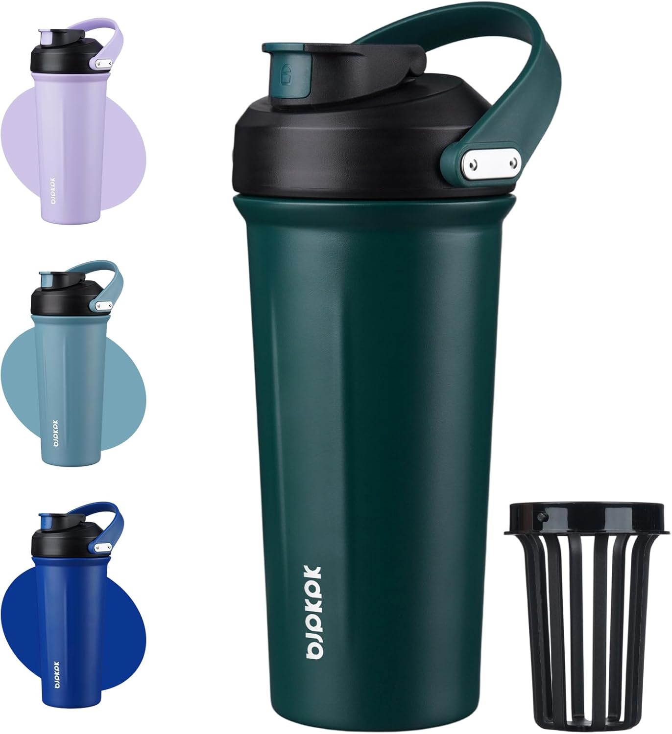 BJPKPK 25 oz Insulated Tumbler with Handle Stainless Steel Shaker Water Bottle for Protein Mixes Dark Green