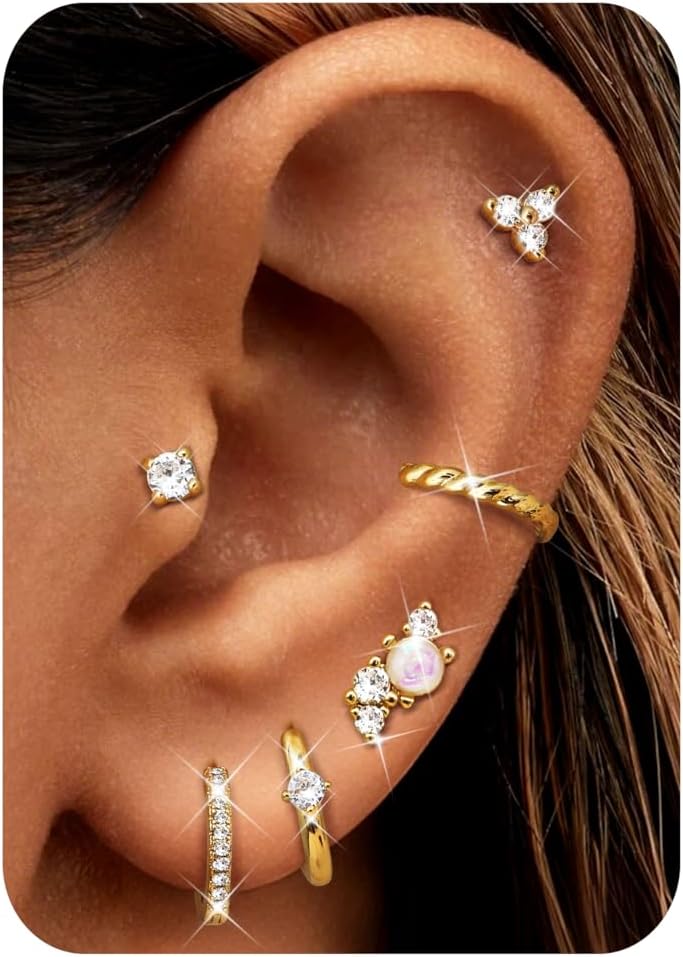 Florideco Small Hoop Earrings 14K Gold Plated Hypoallergenic Flat Back Earrings Surgical Stainless Steel Cartilage Earring Sets for Multiple Piercing Trendy Earring Stacks Flatback Stud Earrings
