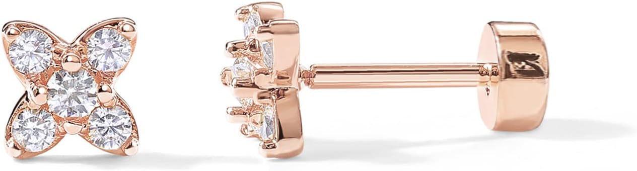 PAVOI 14K Gold Plated Sterling Silver Posts Dainty Mini Multi-Shape Flat Back Stud Earring Pack for Women | Helix Cartilage Piercing Jewelry