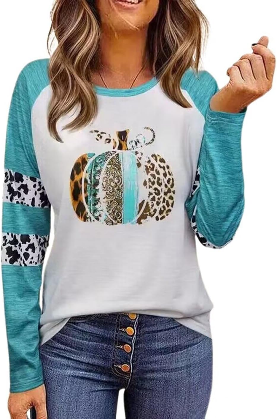 Thankful Greatful Blessed Pumpkin Thanksgiving Shirt for Women Plaid Leopard Pumpkin Tops Raglan Baseball Tshirt