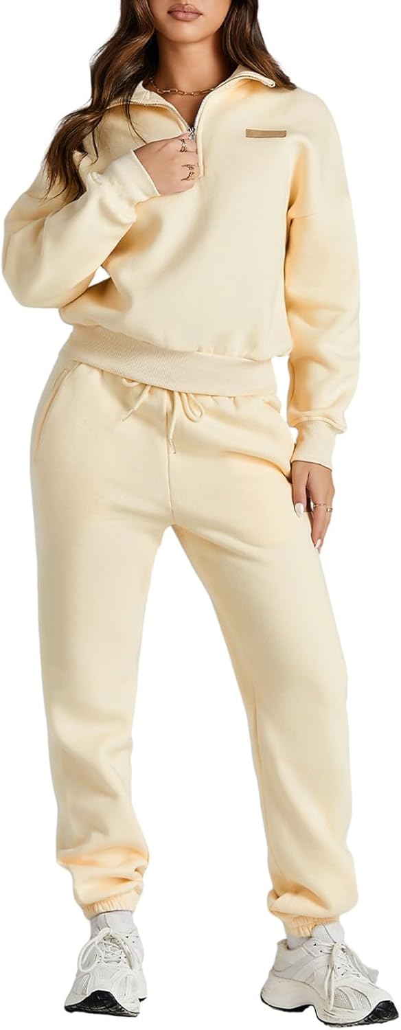 Herseas Women 2 Piece Outfits Sweatsuit Lounge Set Half Zip Pullover with Jogger Airport Tracksuit Matching Pants Set
