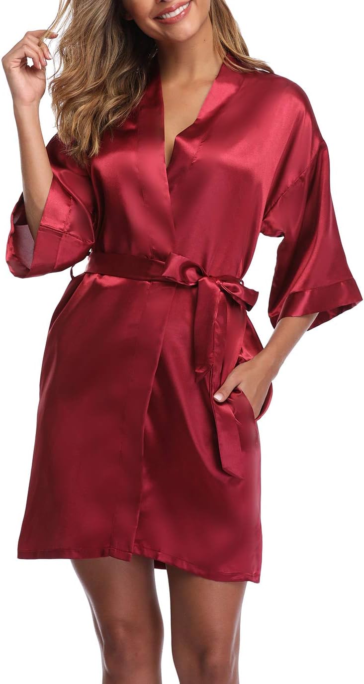 Women's Short Satin Kimono Robe for Wedding Bridal Party Bridesmaid Robe Sleepwear