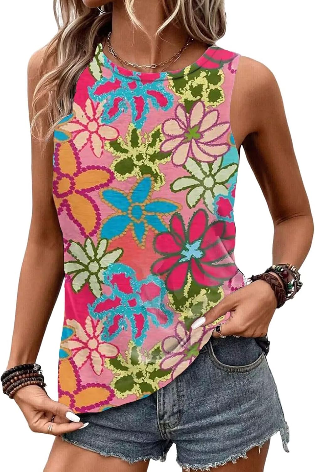 Leopard Print Tank Top for Women Summer Sleeveless Tops Casual Cute Graphic Tanks Loose Fit Vintage Vacation Shirt
