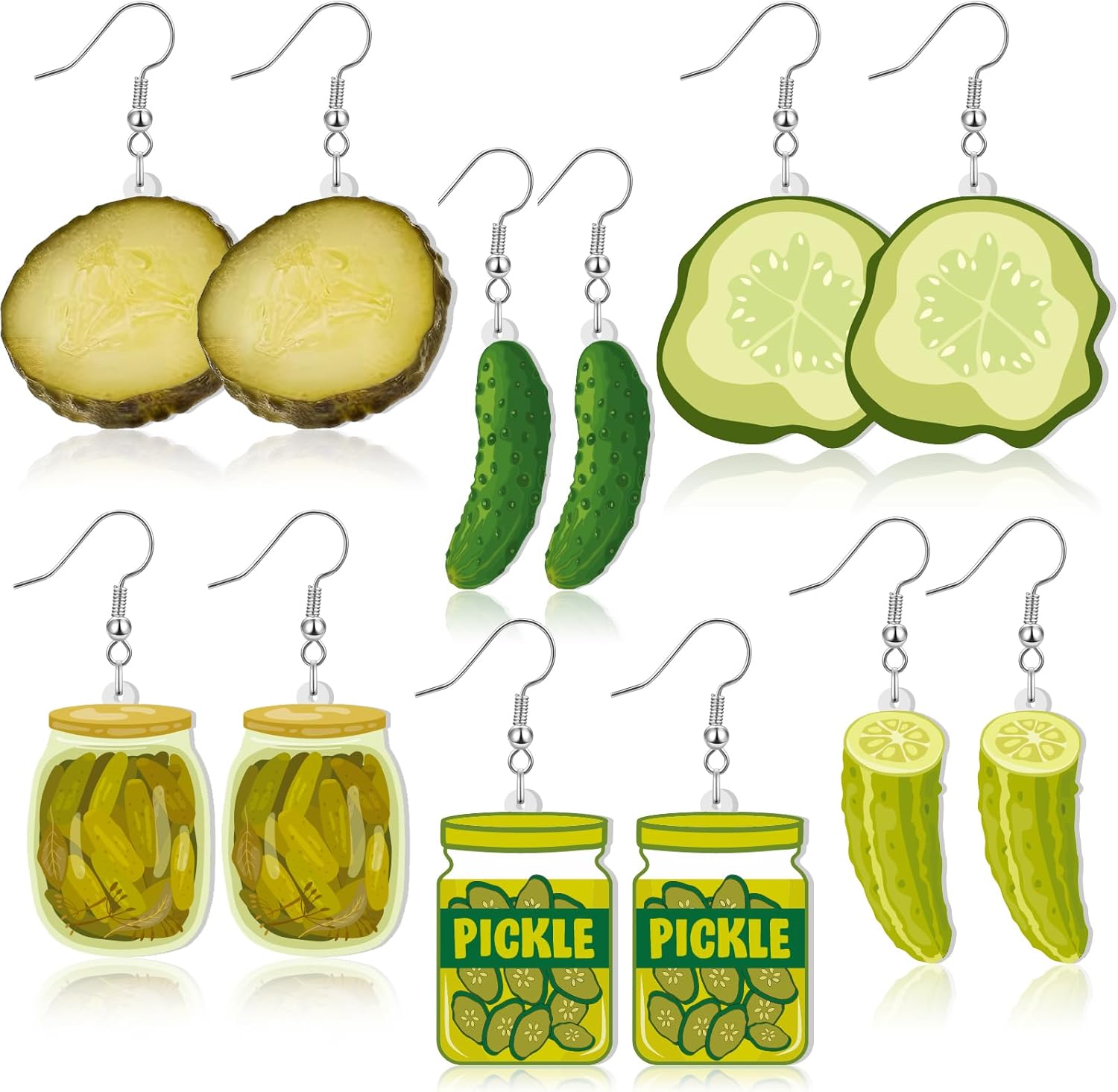 Nosiny 6 Pairs Funny Acrylic Drop Dangle Earring Jewelry Pickle Martini Lemons Earrings 6 Styles Lifelike Dill Cucumber Cocktail Cup Lemon and Flower Cute Weird Jewelry for Women