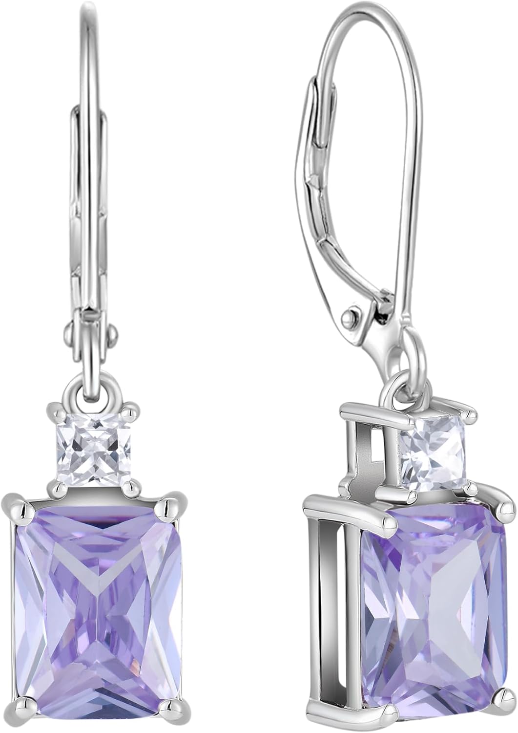 Starchenie Women's Dangle Earrings Sterling Silver Leverback Earrings Princess Brilliant Cut Birthstone Jewelry